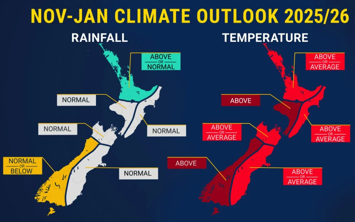 Rainfall swings: The northern North Island may see more rain, while parts of the lower South Island lean drier. Heavy downpours from tropical systems are more likely, so keep an eye on forecasts.